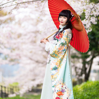 こちらが実際に運営の聖人が撮影会開始前と終了後に急いで撮らせていただいた数カットになりますが、むらさきさんのモデル力と衣装コーデ力、そして綺麗な桜が三位一体となってこんな素敵な写真ができました😊